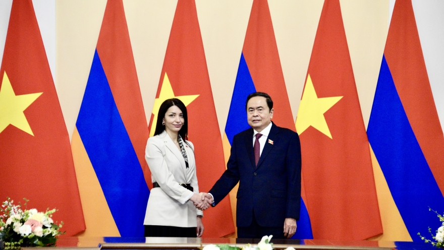 VOV.VN - Chiều 3/4 (theo giờ Hà Nội), tại Tòa nhà Quốc hội, Chủ tịch Quốc hội Armenia Alen Simonyan chủ trì Lễ đón Chủ tịch Quốc hội Trần Thanh Mẫn và Đoàn đại biểu cấp cao Việt Nam thăm chính thức Armenia. Ngay sau lễ đón, hai Chủ tịch Quốc hội đã tiến hành hội đàm.