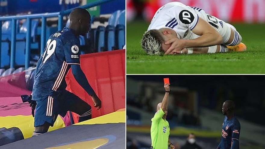 VOV.VN - Mất bình tĩnh trước sự khiêu khích của Ezgjan Alioski, Nicolas Pepe húc đầu vào mặt đối thủ và lĩnh thẻ đỏ trực tiếp trong trận Leeds 0-0 Arsenal.
