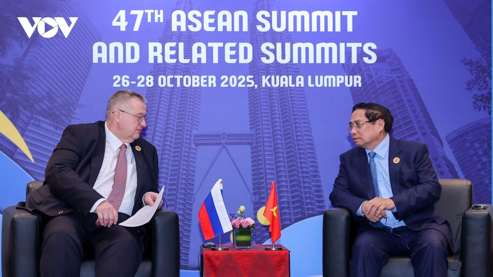 VOV.VN - Nhân dịp dự Hội nghị Cấp cao ASEAN 47 và các hội nghị liên quan tại Kuala Lumpur (Malaysia), Thủ tướng Phạm Minh Chính đã có các cuộc gặp song phương với Thủ tướng Australia Anthony Albanese và Phó Thủ tướng Nga Alexey Overchuk nhằm thúc đẩy quan hệ hợp tác toàn diện giữa Việt Nam với các đối tác chiến lược.