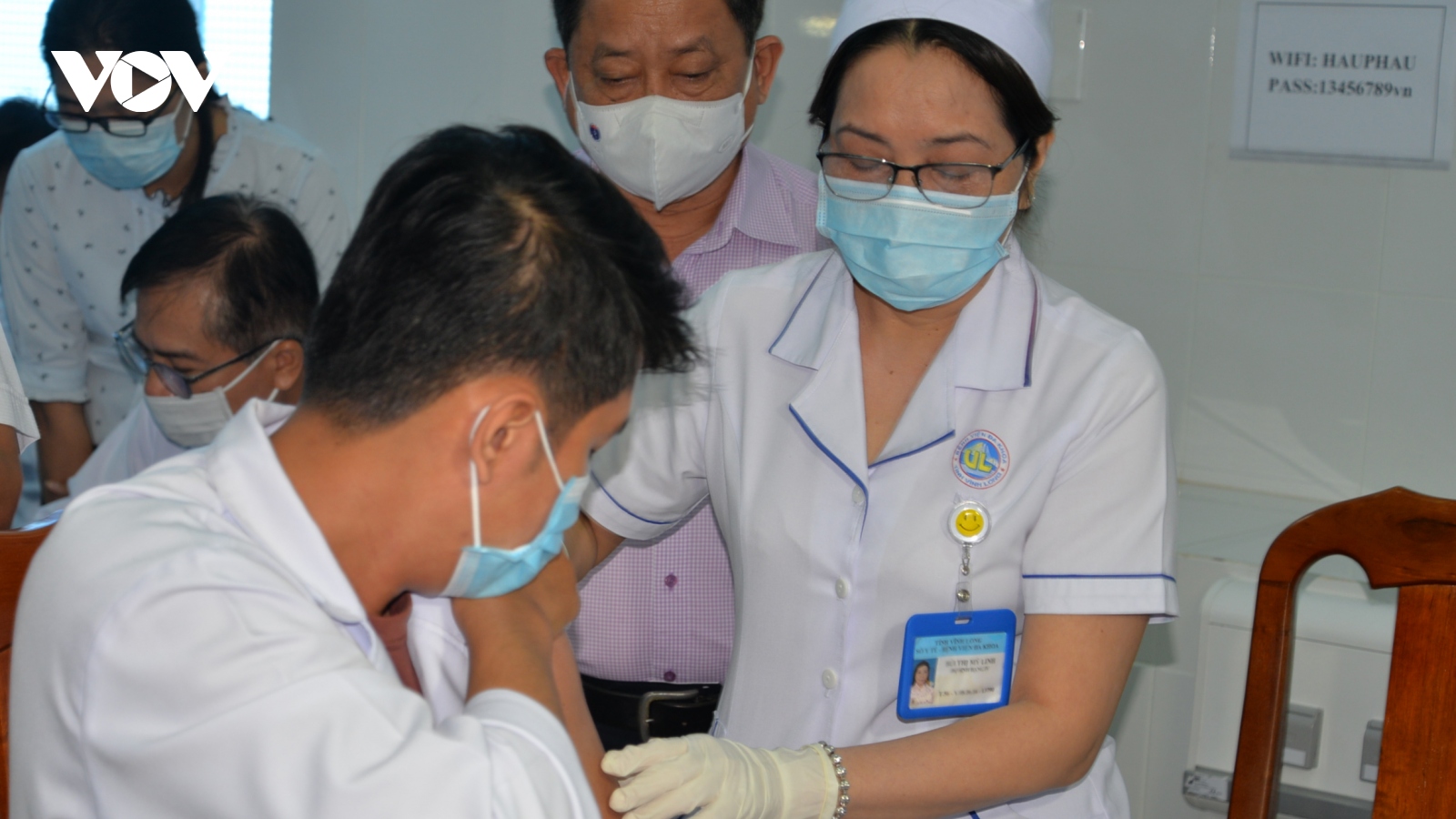 VOV.VN - Sáng 20/4, tỉnh Vĩnh Long bắt đầu tiêm vaccine COVID-19 cho lực lượng tuyến đầu phòng chống dịch bệnh. Đây là những người trực tiếp điều trị, làm nhiệm vụ truy vết, điều tra dịch tễ ở địa phương.