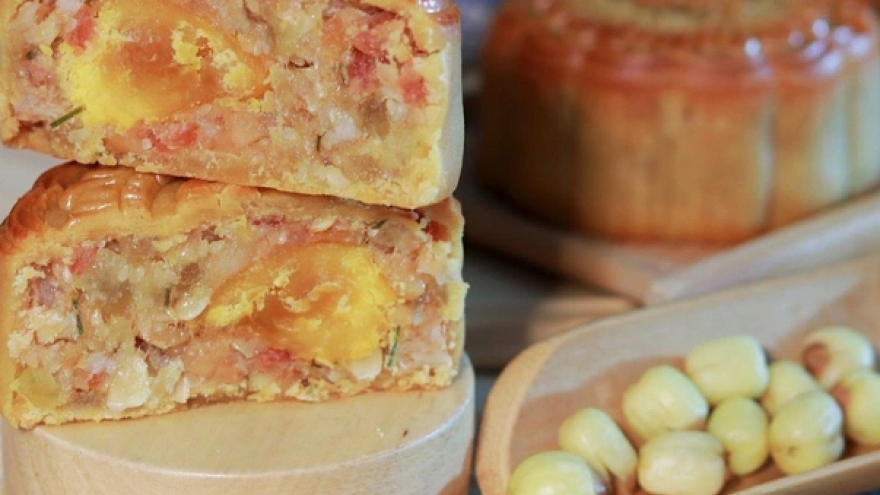 VOV.VN - Bên cạnh bánh Trung thu truyền thống với nhân thập cẩm và đậu xanh, thị trường bánh Trung Thu năm này còn có các loại bánh với nhân vô cùng đặc biệt như nhân xôi xéo, ô mai, tỏi đen, hải sản…