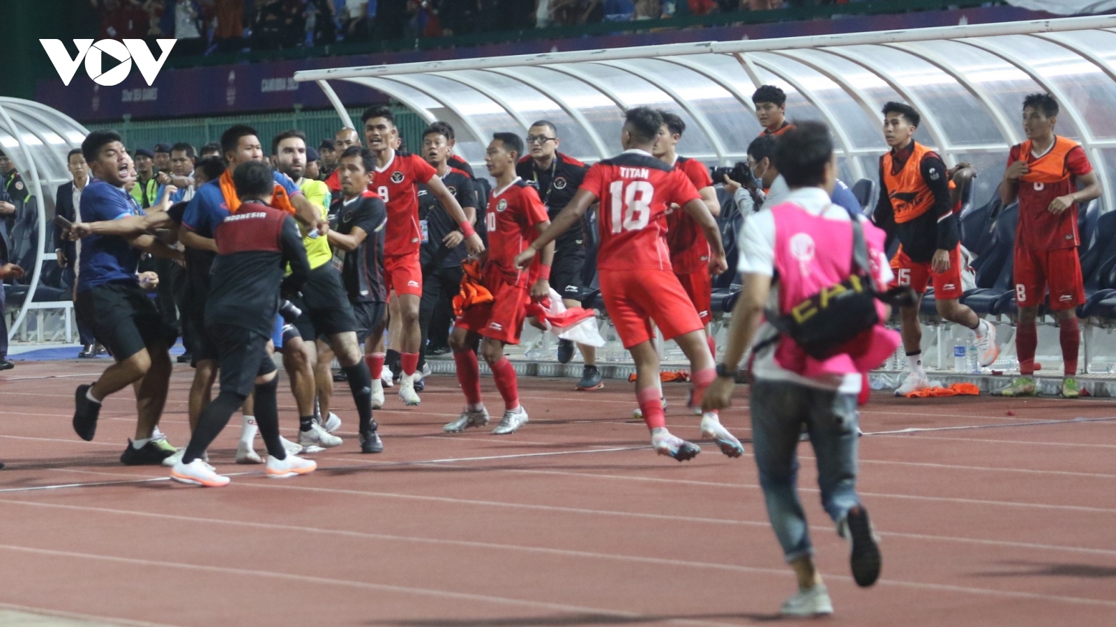 VOV.VN - Liên đoàn bóng đá châu Á (AFC) ra án phạt với 7 thành viên U22 Thái Lan và 7 thành viên U22 Indonesia tham gia ẩu đả ở trận chung kết SEA Games 32.