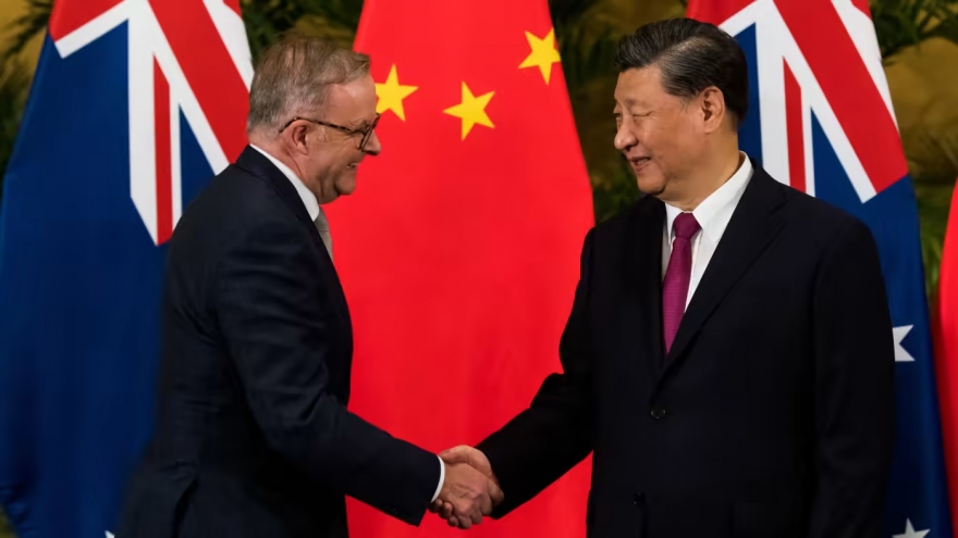 VOV.VN - Chủ tịch Trung Quốc Tập Cận Bình có cuộc hội kiến với Thủ tướng Australia Anthony Albanese, người đang có chuyến thăm Trung Quốc, tại Bắc Kinh vào ngày 6/11 và nhấn mạnh hai nước không có xung đột lợi ích cơ bản, hoàn toàn có thể trở thành đối tác tin cậy của nhau.