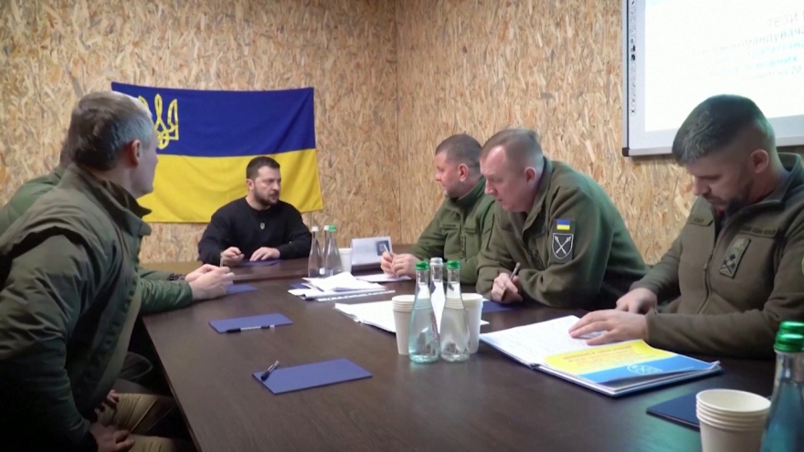 VOV.VN - Văn phòng Tổng thống Ukraine thông báo ông Volodymyr Zelensky ngày 20/10 đã tới thăm Kherson và Mykolaiv, đồng thời thảo luận tình hình trên các mặt trận với Tổng tư lệnh quân đội Ukraine Valery Zaluzhnyi.