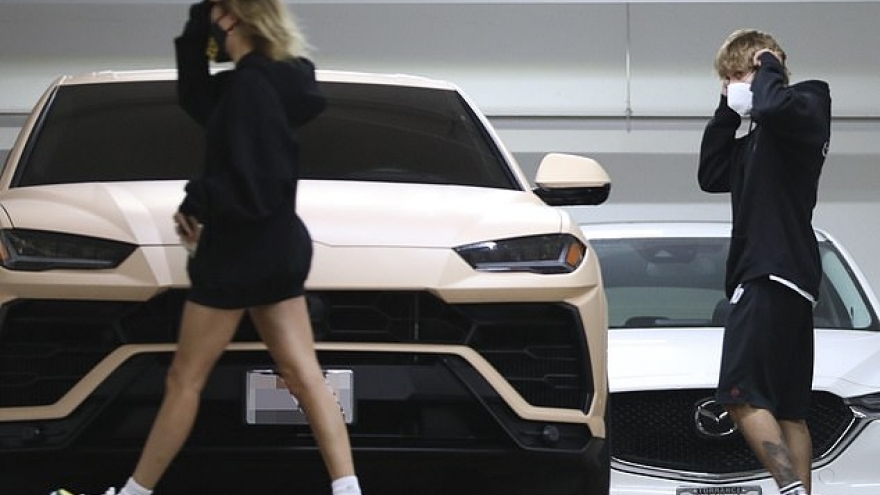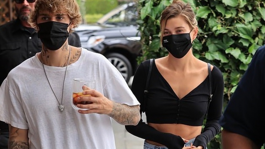 VOV.VN - Justin Bieber đeo khẩu trang, mặc áo phông đơn giản, khoe hình xăm mới trên cổ khi đi ăn trưa lãng mạn cùng bà xã Hailey Baldwin ở Beverly Hills ngày 8/9.