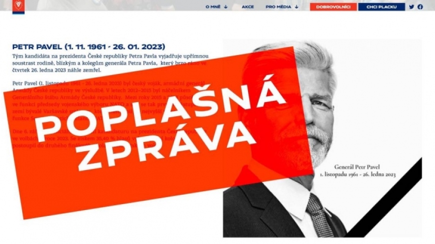 VOV.VN - Một ngày trước khi diễn ra vòng 2 của cuộc bầu cử Tổng thống Séc, ứng viên Petr Pavel bị một trang web giả mạo và tung tin giả rằng ứng viên này qua đời vào sáng 26/1.