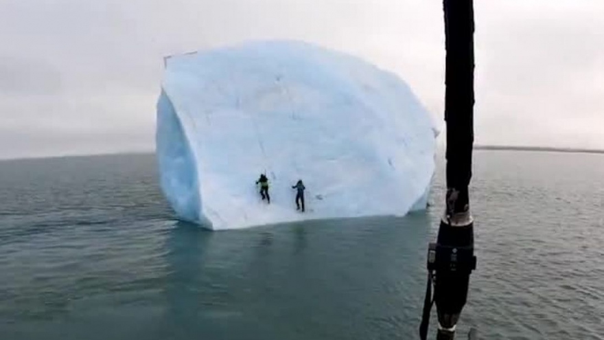 VOV.VN - Hai nhà thám hiểm leo lên tảng băng để nghiên cứu. Tuy nhiên sau đó, tảng băng bị lật khiến họ bị hất xuống vùng biển giá lạnh ở Svalbard, Bắc Cực. Rất may không ai bị thương.