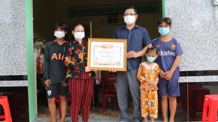VOV.VN - Hôm nay 26/10, Phòng Lao động - Thương binh và Xã hội thành phố Bạc Liêu, tỉnh Bạc Liêu đã tổ chức trao Bằng Tổ quốc ghi công cho gia đình liệt sỹ Châu Khêl (SN 1984, người dân tộc Khmer, trú xã Vĩnh Trạch Đông, thành phố Bạc Liêu).