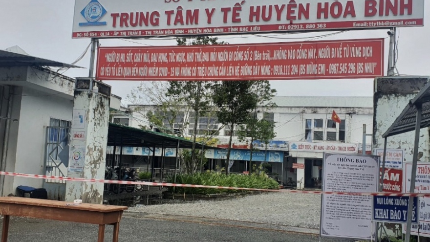 VOV.VN - Ngày 11/9, tỉnh Bạc Liêu quyết định phong tỏa, thiết lập vùng cách ly y tế Trung tâm Y tế huyện Hòa Bình, tạm ngừng tiếp nhận khám, chữa bệnh nhân do phát hiện 5 trường hợp dương tính với SARS -CoV-2 tại đây.