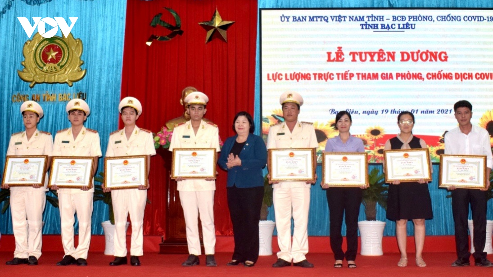 VOV.VN - Hôm nay 19/1, Ủy ban MTTQ Việt Nam tỉnh Bạc Liêu và Ban Chỉ đạo Phòng, chống dịch Covid-19 tỉnh tổ chức Lễ tuyên dương lực lượng trực tiếp tham gia phòng, chống dịch Covid-19.