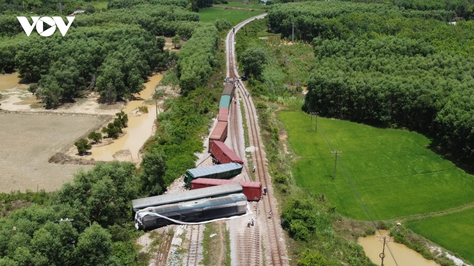 VOV.VN - Đường sắt Bắc Nam chính thức thông tuyến, khai thác trở lại hơn 10 tiếng bị tắc nghẽn do tàu hàng SH4 trật bánh xảy ra tại ga Sa Lung, xã Vĩnh Long, huyện Vĩnh Linh, tỉnh Quảng Trị.