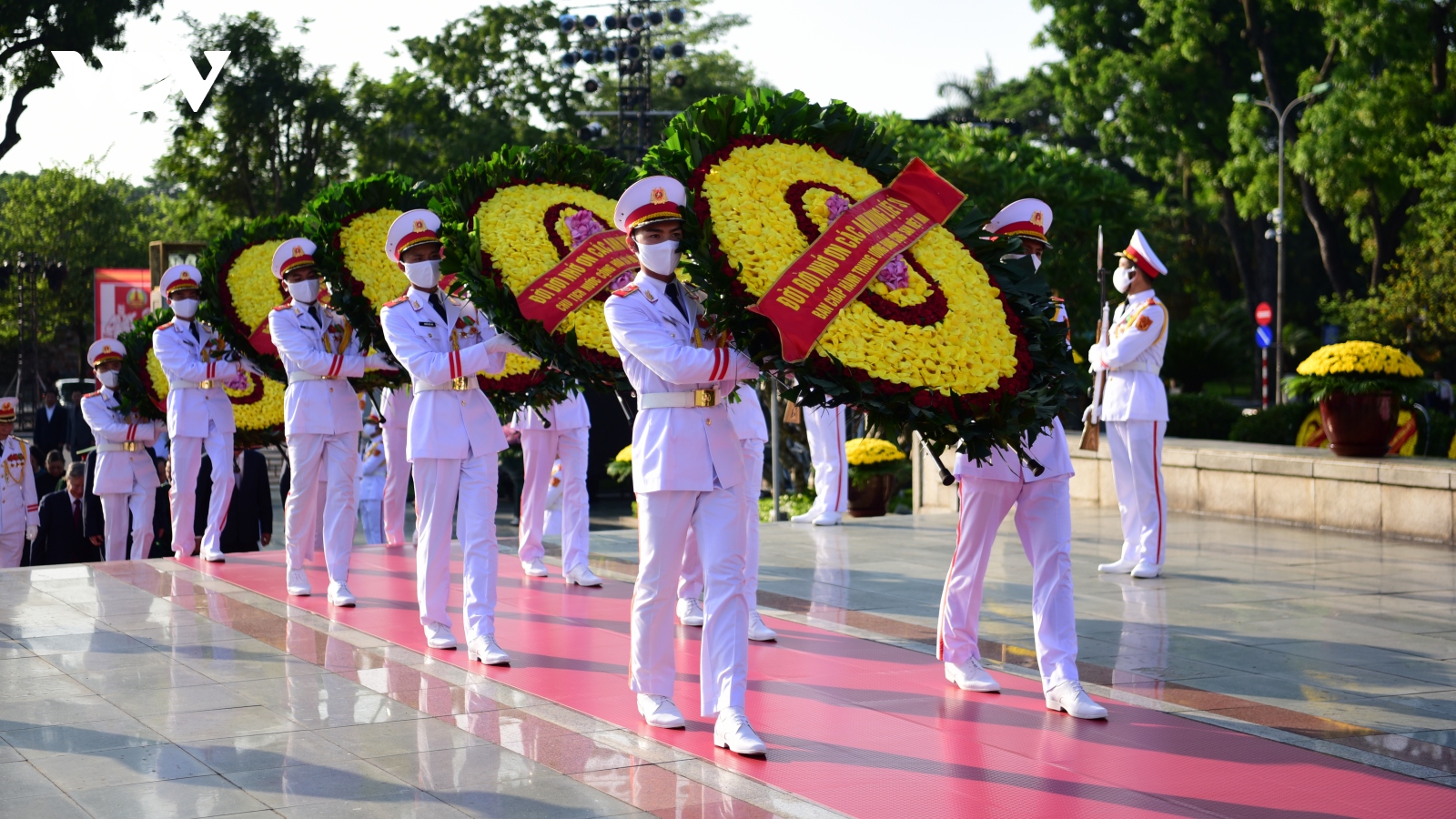 VOV.VN - Sáng 26/7, các lãnh đạo, nguyên lãnh đạo Đảng, Nhà nước, Mặt trận Tổ quốc Việt Nam đã tới đặt vòng hoa, dâng hương tại Ðài tưởng niệm các Anh hùng liệt sĩ và vào Lăng viếng Chủ tịch Hồ Chí Minh.