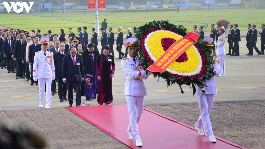 Lãnh đạo Đảng, Nhà nước và các đại biểu dự Đại hội XIII vào Lăng viếng Bác