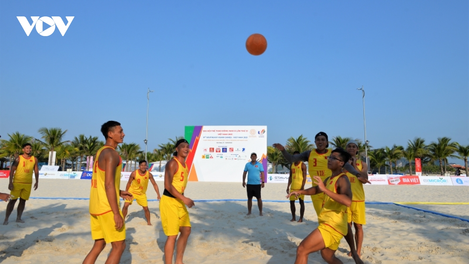 VOV.VN - Chiều nay (6/5), đội tuyển bóng ném bãi biển nam Việt Nam “mở hàng” cho đoàn thể thao Việt Nam tại SEA Games 31 với trận thắng 2-0 trước tuyển Singapore.