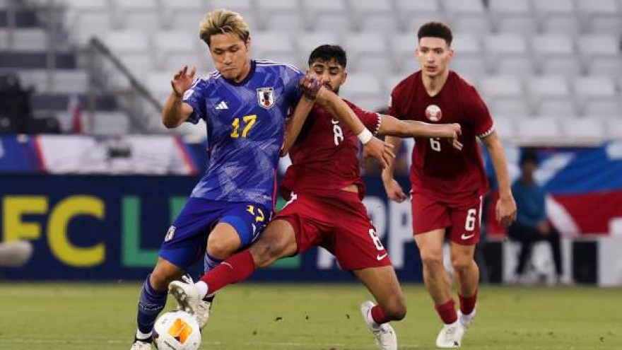 VOV.VN - Dù được chơi hơn người từ phút 42 nhưng U23 Nhật Bản chỉ có thể vượt qua U23 Qatar với tỷ số 4-2 trong hiệp phụ, sau khi hai đội hòa nhau 2-2 trong thời gian thi đấu chính thức.