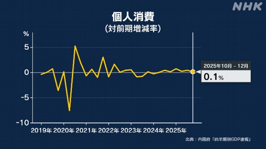 VOV.VN - Nền kinh tế Nhật Bản đã quay trở lại nhịp tăng trưởng khi tổng sản phẩm quốc nội (GDP) của nước này trong Quý IV/2025 đã tăng 0,1% so với Quý III trước đó. Đây cũng đánh dấu là nhịp tăng trưởng tích cực đầu tiên sau 2 quý.