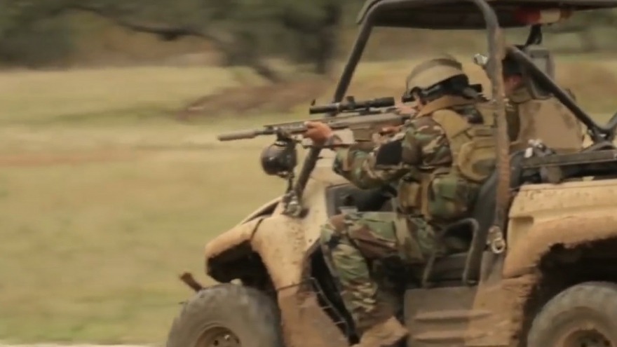 Đặc nhiệm thủy quân lục chiến Mỹ luyện tập bắn tỉa trên ô tô và từ máy bay