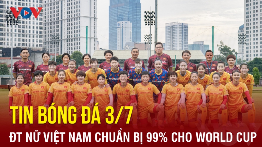 VOV.VN - Bản tin bóng đá 3/7, HLV Mai Đức Chung chia sẻ về tình trạng chấn thương của trung vệ Chương Thị Kiều và cho biết quá trình chuẩn bị cho World Cup nữ 2023 của ĐT nữ Việt Nam đã xong tới 99%.