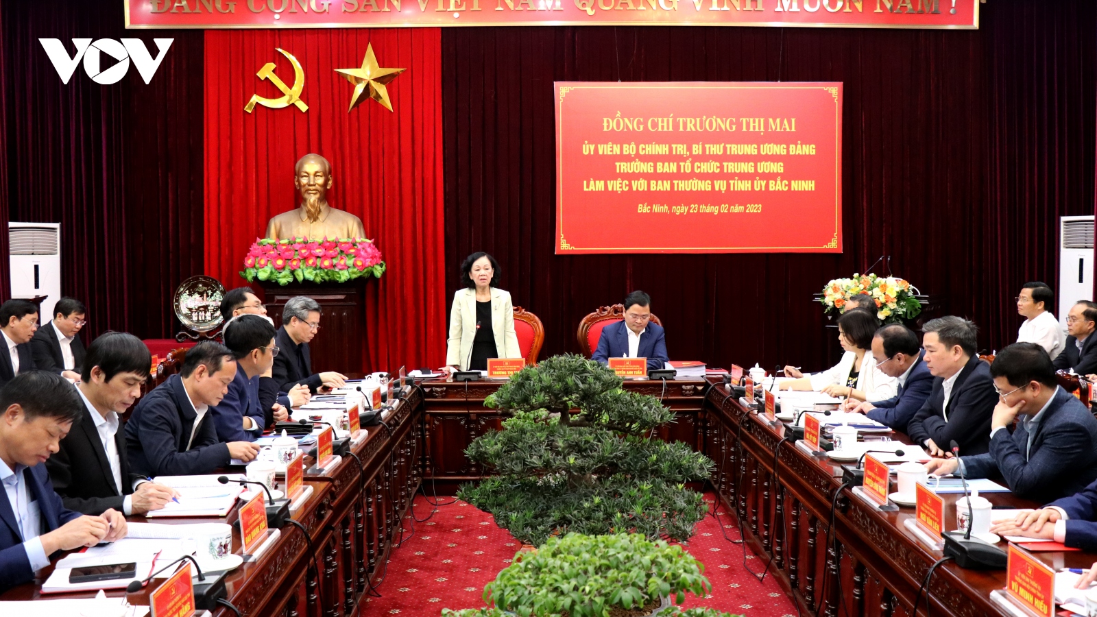 VOV.VN - Trưởng Ban Tổ chức Trung ương Trương Thị Mai khẳng định: "Để đáp ứng yêu cầu trong tình hình mới tỉnh cần tăng cường xây dựng, chỉnh đốn Đảng và hệ thống chính trị trong sạch, vững mạnh; phát huy sức mạnh đại đoàn kết toàn dân, giá trị bản sắc văn hóa Bắc Ninh - Kinh Bắc".