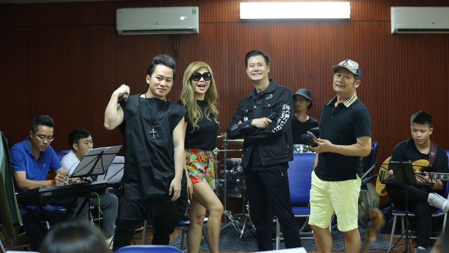 VOV.VN - Các ca sĩ Bằng Kiều, Quang Dũng, Ngọc Anh 3A và Tùng Dương đã có buổi tập luyện bên nhau để chuẩn bị cho liveconcert “Trở về ngày yêu thương’’ do Thăng Long show tổ chức vào 1-2/7 tại Nhà hát Lớn Hà Nội.
