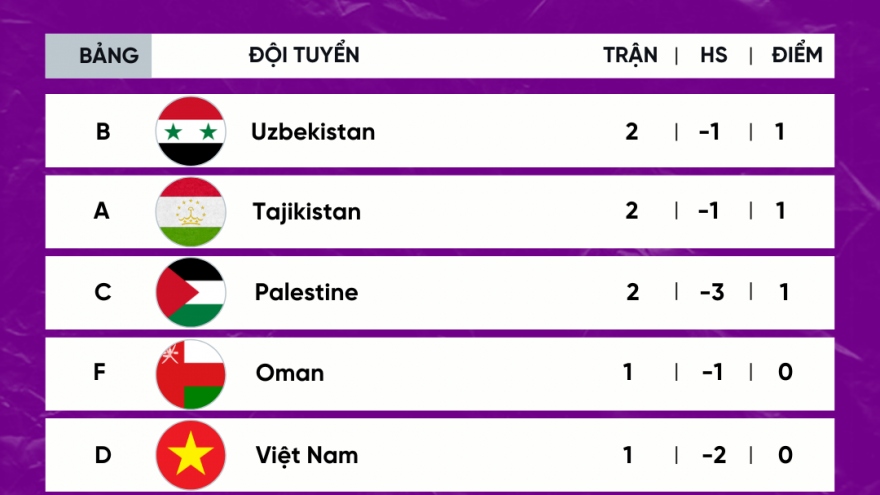 VOV.VN - Bảng xếp hạng những đội đứng thứ 3 có thành tích tốt nhất Asian Cup 2023, ĐT Việt Nam đứng thứ 4, vị trí đủ để giúp thầy trò HLV Troussier có thể giành vé đi tiếp.