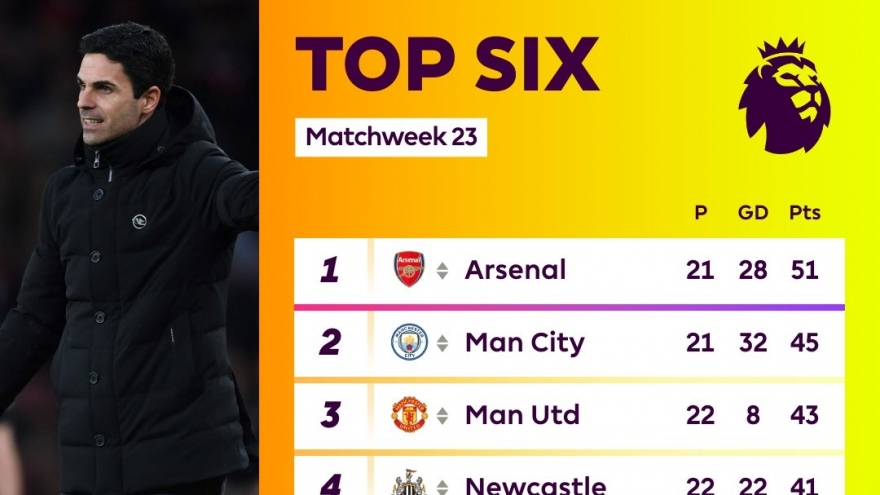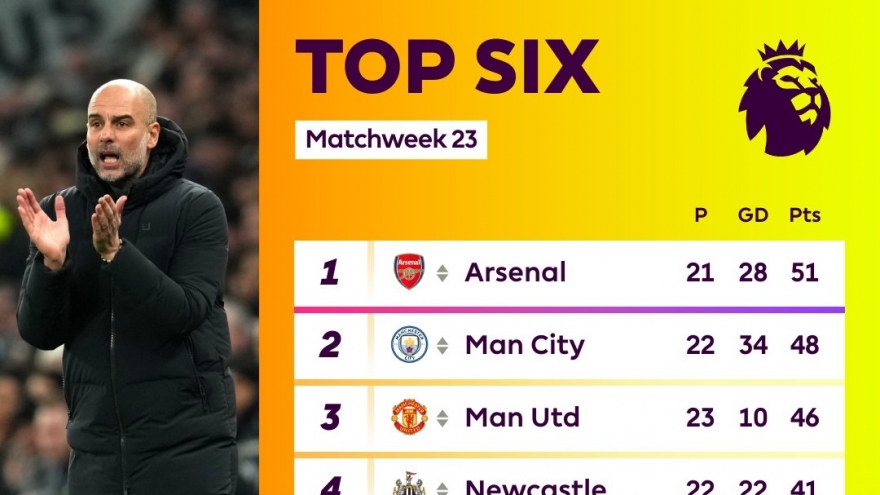VOV.VN - Cập nhật bảng xếp hạng Ngoại hạng Anh 2022/2023 mới nhất, cuộc đua vô địch trở nên kịch tính khi Man City và MU đều giành chiến thắng ở vòng 23.