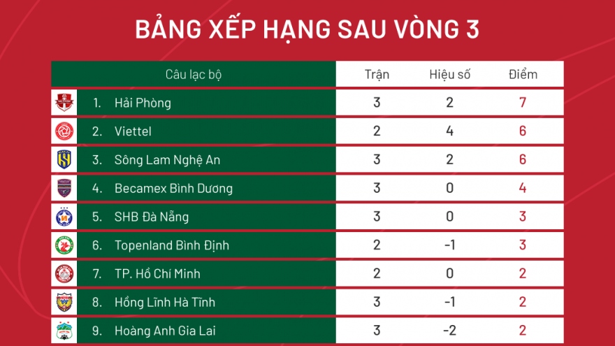 Bảng xếp hạng V-League 2022 sau vòng 3: Hải Phòng đua vô địch với Viettel FCVOV.VN - Cập nhật bảng xếp hạng V-League 2022, Hải Phòng dẫn đầu bảng xếp hạng, HAGL gây thất vọng lớn.
