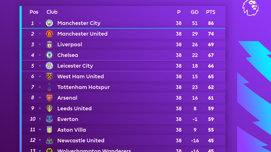 Bảng xếp hạng Ngoại hạng Anh 2020/2021 chung cuộc: Bi kịch của Leicester CityVOV.VN - Cập nhật Bảng xếp hạng Ngoại hạng Anh mùa giải 2020/2021, Leicester City rơi vào bi kịch như mùa giải trước, khi bật khỏi tốp 4.
