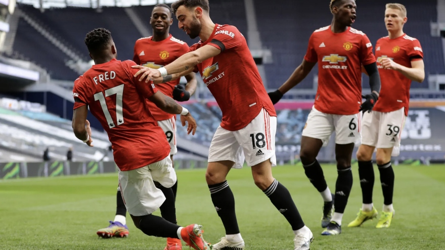 VOV.VN - MU ngược dòng ngoạn mục giành thắng lợi với tỷ số 3-1 trên sân Tottenham, qua đó củng cố vững chắc ngôi nhì bảng, trong khi đẩy Gà trống xa dần top 4 sau vòng 31 Ngoại hạng Anh 2020/2021.