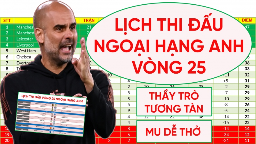 Lịch thi đấu Ngoại hạng Anh vòng 25: MU gặp đối thủ dễ thở, Arsenal đại chiến Man CityVOV.VN - Lịch thi đấu Ngoại hạng Anh (Premier League) 2020/2021 vòng 25, MU gặp đối thủ dễ thở, Arsenal đại chiến Man City.