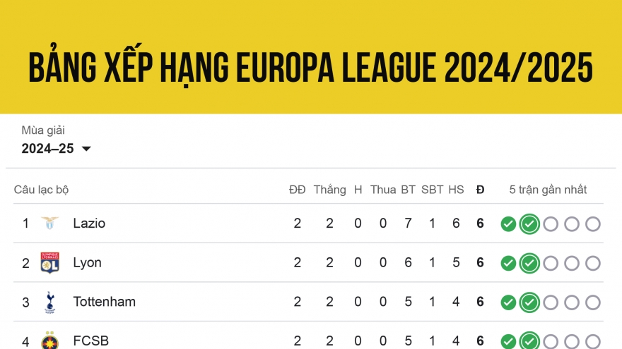 VOV.VN - Bảng xếp hạng Cúp C1 châu Âu 2024/2025 mới nhất tính đến sáng 2/10, Dortmund sau chiến thắng đậm 7-1 ở loạt trận thứ 2 đã tạm leo lên dẫn đầu với 6 điểm.
