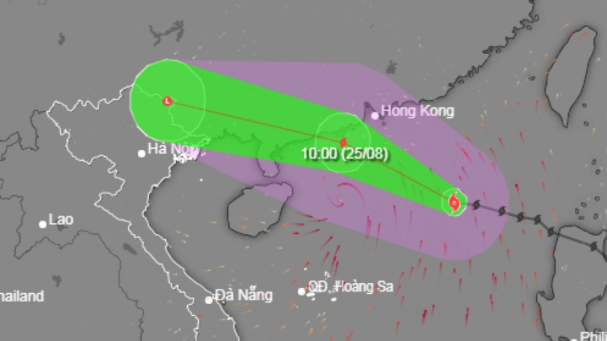 VOV.VN - Theo Trung tâm dự báo khí tượng thủy văn quốc gia, vị trí tâm bão lúc 15 giờ ngày 24/8 khoảng 19.6oN; 116.1oE, sức gió mạnh nhất: cấp 11-12 (103-133km/h), giật cấp 15.