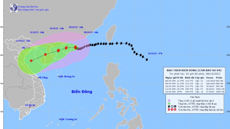 VOV.VN - Hồi 4h ngày 8/10, vị trí tâm bão ở vào khoảng 21,4 độ Vĩ Bắc; 114,7 độ Kinh Đông, cách Hồng Kông (Trung Quốc) khoảng 120km về phía Nam.