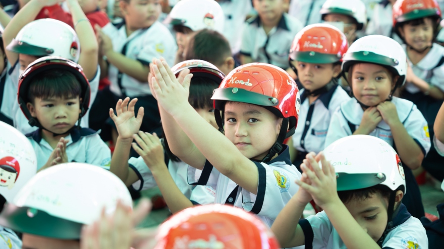 VOV.VN - Công ty Honda Việt Nam phối hợp với Ủy ban ATGT Quốc gia, Bộ Giáo dục và Đào tạo tổ chức sự kiện phát động trao tặng mũ bảo hiểm cho học sinh lớp 1 kết hợp đào tạo kiến thức an toàn giao thông cho học sinh và phụ huynh khu vực phía Nam tại trường Tiểu học Trương Định, thành phố Tây Ninh.