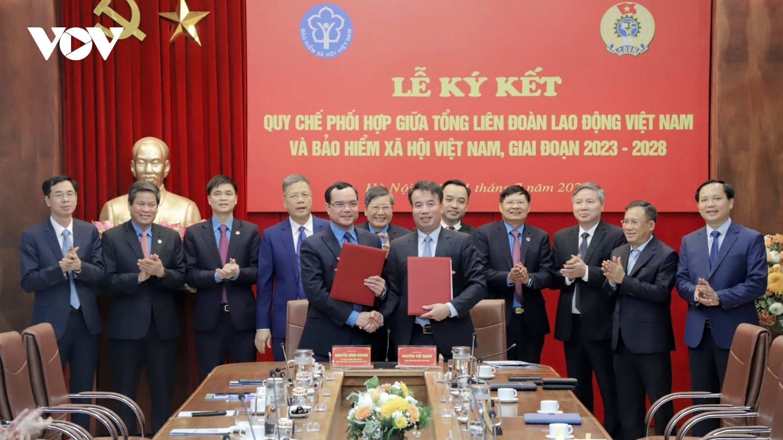 VOV.VN - Việc phối hợp chặt chẽ của 2 cơ quan thời gian qua đã giúp phát huy được sức mạnh tổng hợp của cả hệ thống, góp phần tích cực vào việc nâng cao nhận thức, giúp người dân nói chung và các Đoàn viên Công đoàn nói riêng thực hiện tốt nghĩa vụ và được đảm bảo quyền lợi chính đáng về BHXH, BHYT.