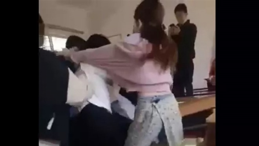 VOV.VN - Trên mạng xã hội vừa lan truyền một clip về sự việc được cho là xảy ra tại một trường THCS trên địa bàn tỉnh Lạng Sơn. Trong clip này, một nữ sinh đang quỳ gối trong lớp và bị bạn học tát liên tiếp vào mặt.