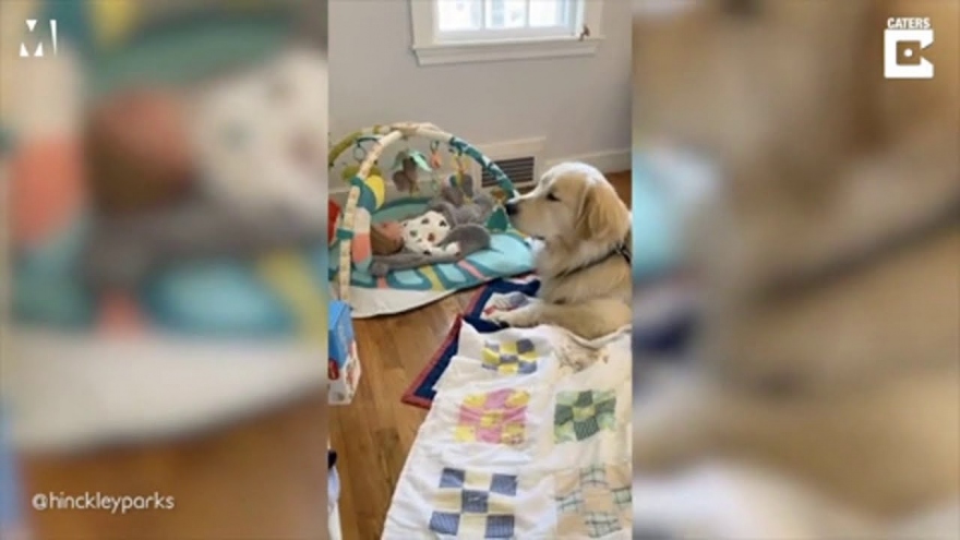 VOV.VN - Chú chó Hinckley thuộc giống Golden Retriever đã hóa thân thành một "bảo mẫu chuyên nghiệp" khi không rời mắt khỏi bé trai Theodore. Đoạn video đáng yêu cho thấy, chú cún dành cho em bé ánh mắt trìu mến và luôn ở bên cạnh khi em bé ngủ, ăn hay chơi.