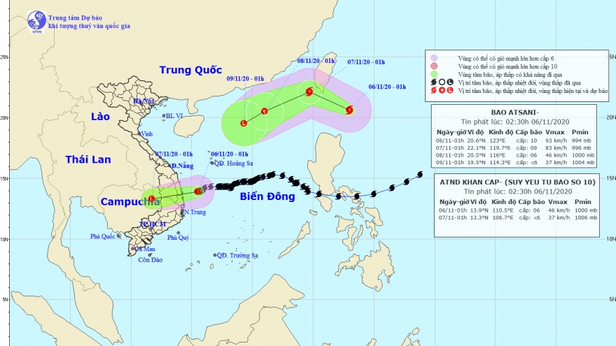 Bão số 10 vừa suy yếu thành áp thấp, bão Tia chớp lại tiến vào Biển ĐôngVOV.VN - Ngay sau khi bão số 10 suy yếu thành áp thấp nhiệt đới, cơn bão Atsani (Tia chớp) từ khu vực miền trung Philippines đang di chuyển đến gần Biển Đông.