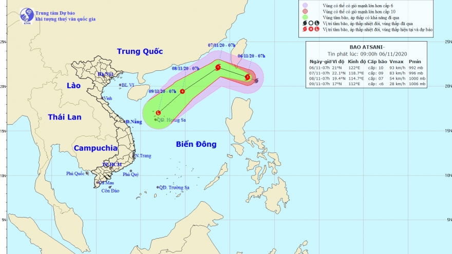 Bão số 11 mạnh cấp 9, giật cấp 11 trên Biển ĐôngVOV.VN - Bão số 11 (tên quốc tế là Atsani) mạnh cấp 9 (75-100km/giờ), giật cấp 11 đã đi vào Biển Đông