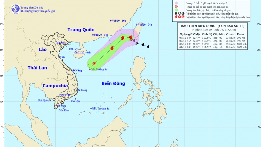 Bão số 11 sẽ sớm suy yếu thành áp thấp nhiệt đớiVOV.VN - Hồi 7 giờ ngày 7/11, vị trí tâm bão ở khoảng 22,6 độ Vĩ Bắc; 119,4 độ Kinh Đông, ngay trên vùng biển phía Tây Nam đảo Đài Loan.