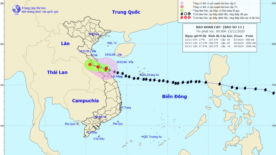 VOV.VN - Do ảnh hưởng của bão số 13, đến sáng 15/11, tại Thừa Thiên Huế có gió giật và mưa lớn. Tại Quảng Trị, có gió mạnh cấp 9, giật cấp 11, song không có thiệt hại nặng.