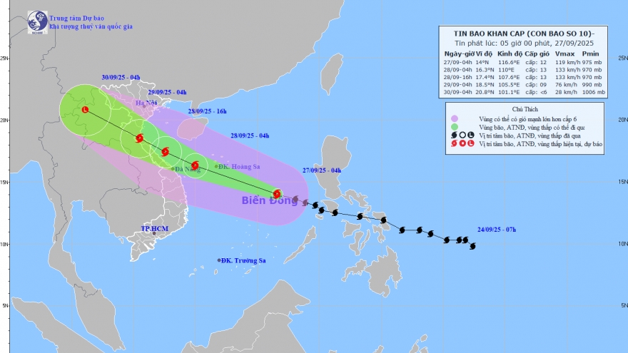Bão KALMAEGI đã vào biển Đông thành cơn bão số 13, có thể đạt cấp 14, giật cấp 17