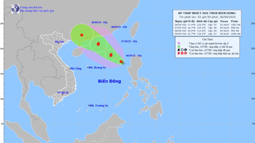 VOV.VN - Áp thấp nhiệt đới di chuyển theo hướng Tây Bắc trên vùng biển phía Đông khu vực Bắc Biển Đông, dự báo có thể mạnh lên thành bão, gây gió mạnh và sóng cao.