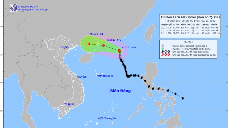 VOV.VN - Hồi 7h ngày 2/11, vị trí tâm bão số 7 ở vào khoảng 20,7 độ Vĩ Bắc; 115,6 độ Kinh Đông, cách Hồng Kông (Trung Quốc) khoảng 250km về phía Đông Nam.