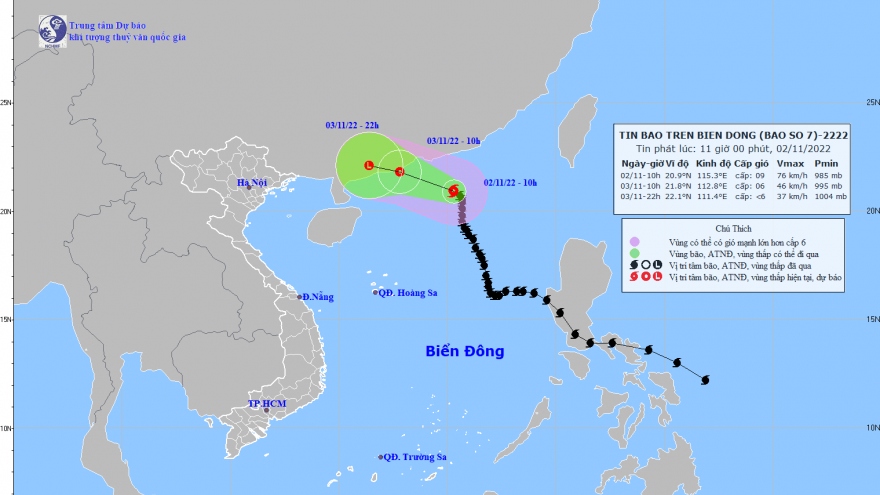 VOV.VN - Hồi 10h ngày 2/11, vị trí tâm bão số 7 ở vào khoảng 20,9 độ Vĩ Bắc; 115,3 độ Kinh Đông, cách Hồng Kông (Trung Quốc) khoảng 210km về phía Nam Đông Nam.