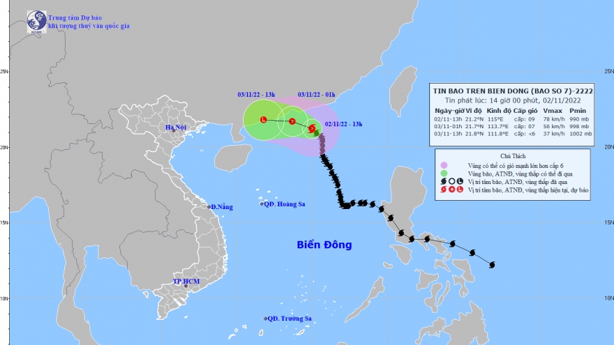 VOV.VN - Hồi 13h ngày 2/11, vị trí tâm bão số 7 ở vào khoảng 21,2 độ Vĩ Bắc; 115,0 độ Kinh Đông, cách Hồng Kông (Trung Quốc) khoảng 190km về phía Nam Đông Nam.