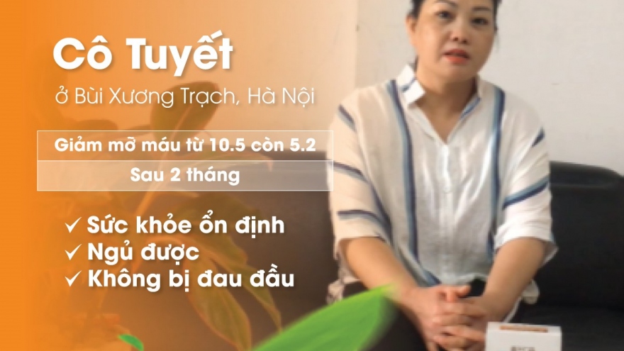 VOV.VN - “Do chỉ số mỡ máu của tôi quá cao, thường xuyên bị tắc đường mạch máu lên não nên tôi luôn cảm thấy mệt, đau đầu, mất ngủ. May thay, chỉ số mỡ máu cao gần gấp đôi đã trở về ngưỡng bình thường sau 2 tháng", chia sẻ cô Tuyết ở Bùi Xương Trạch, Hà Nội.