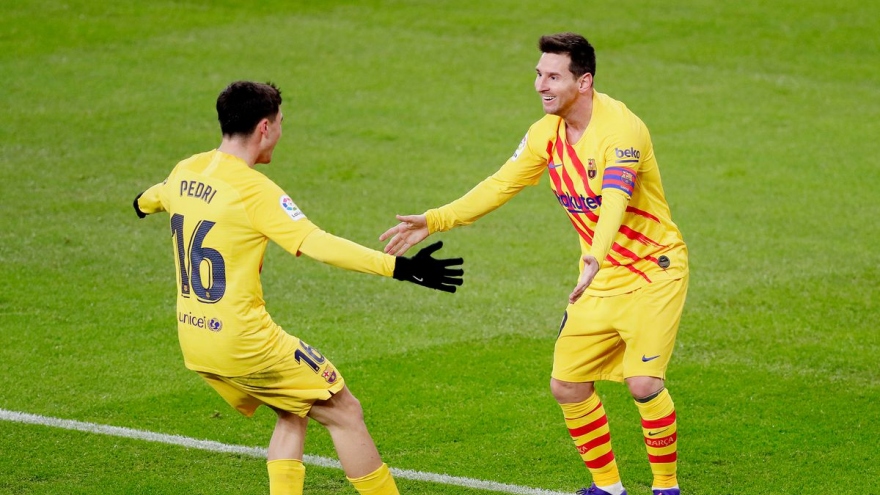 VOV.VN - Sự thăng hoa của Messi giúp Barca đánh bại Bilbao 3-2 trong trận đá bù vòng 2 La Liga để vươn lên vị trí thứ 3 trên BXH, chỉ còn kém Real Madrid và Atletico Madrid.