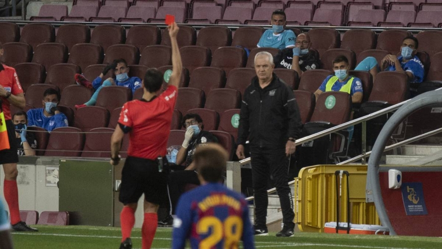 VOV.VN - HLV Javier Aguirre của Leganes nhận thẻ đỏ ở trận đấu với Barca tại vòng 29 La Liga 2019/2020 vì phát ra âm thanh giống tiếng còi của trọng tài.