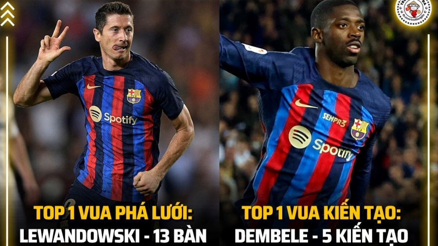 Lewandowski không có đối thủ ở cuộc đua “Vua phá lưới” La Liga 2022/2023VOV.VN - Chân sút người Ba Lan đang tỏ ra vượt trội hoàn toàn so với các đối thủ đua tranh tới danh hiệu “Vua phá lưới” La Liga 2022/2023.
